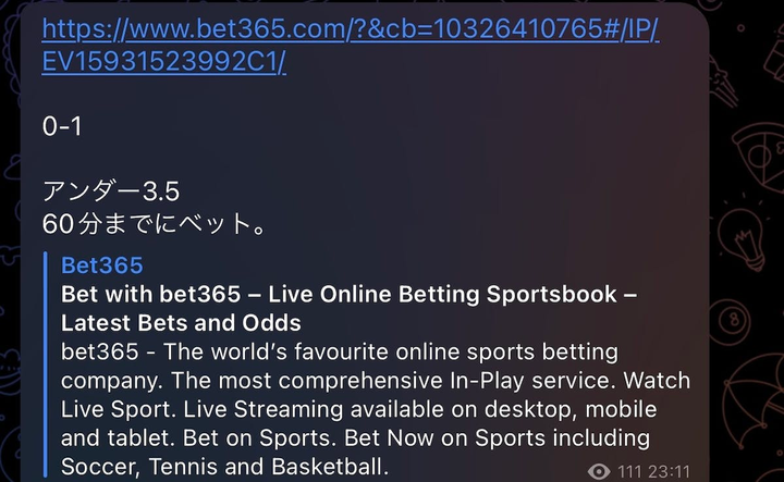 URLをタップすると直接bet365の試合の画面に遷移します。